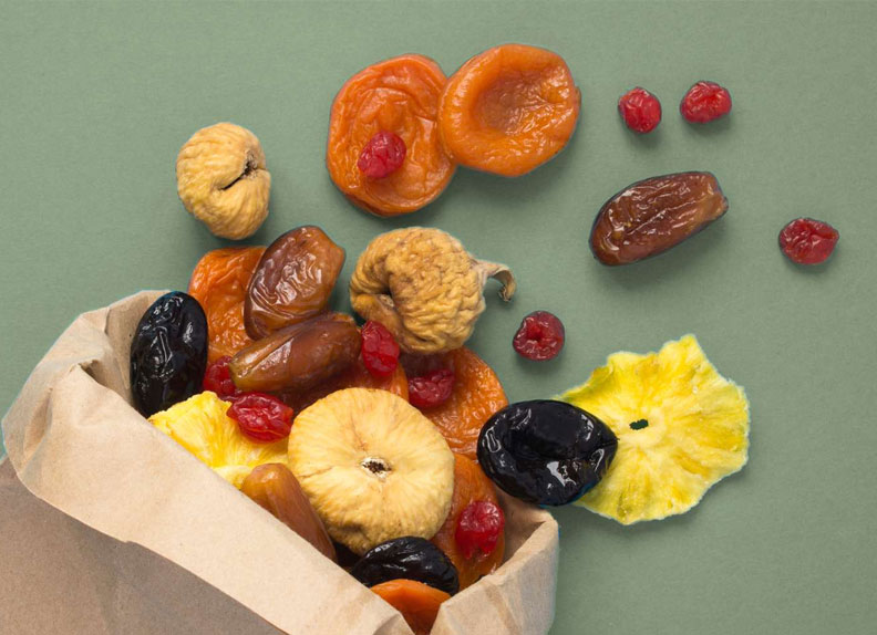 ۴. میوههای خشک و خیلی شیرین (خرما، کشمش، انجیر خشک و …)