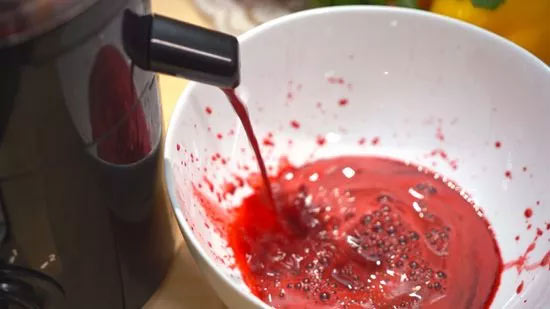 تکههای لبو را همراه با سیب یا زنجبیل داخل دستگاه بریزید.